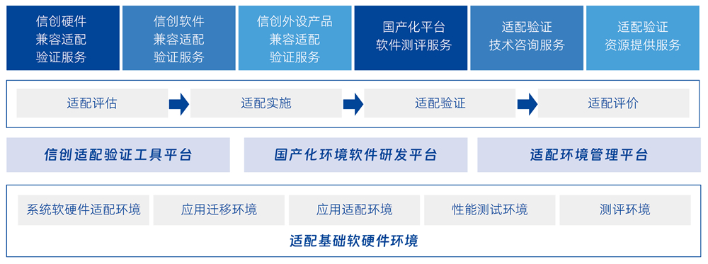 BB贝博艾弗森官网信创适配验证服务,基于信创适配验证实验室,建设基于多种技术路线的适配测试平台和应用迁移平台。提供从自主创新系统软硬件产品的适配到应用软件的迁移、适配、研发、测试的全流程服务。包括硬件兼容适配验证服务、软件适配兼容验证服务、外设产品适配兼容验证服务、国产化平台软件测评服务、适配验证技术咨询服务、适配验证资源提供服务。