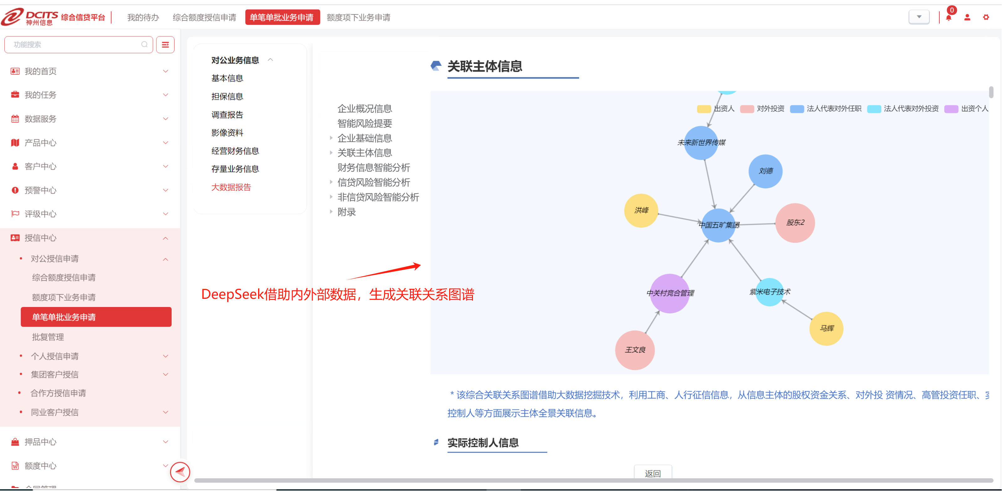 BB贝博艾弗森官网通过接入国产开源大模型DeepSeek,成功研发“智能综合信贷系统”。该系统依托DeepSeek大模型的强大能力,实现了多模态解析、动态建模与实时预警等能力提升,从而对信贷业务全流程进行精准决策与效率跃升。在具体应用中,系统重点聚焦于“非标数据转化、供应链交易验证、软信息量化、行业风险监控、客户画像精准营销”五大场景,并在这些领域实现了突破性进展。
